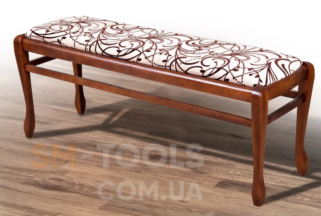 Данная модель оформлена в классическом стиле, поэтому прекрасно будет смотреться, если в вашем интерьере преобладает деревянная мебель. Каркас изготовлен из массива натурального дерева бук, а верх обит тканью. Изящные завитки принта контрастного с основой цвета, делают изделие просто неповторимым.