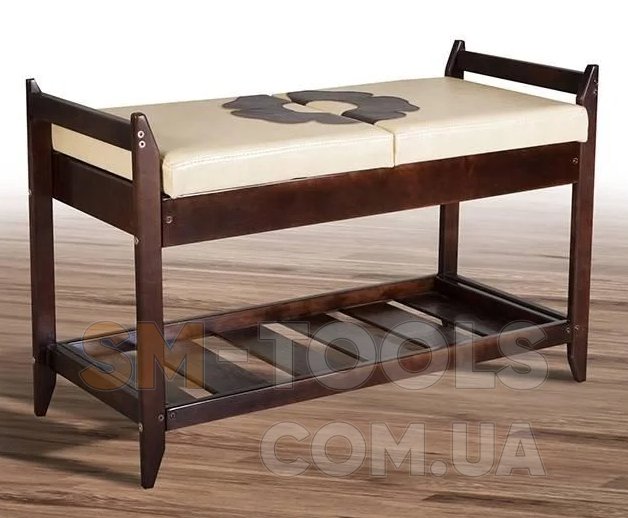 Если вы хотите разнообразить интерьер вашей прихожей, вам необходимо обратить внимание на лавку для обуви №4 из коллекции «Полезных мелочей». Это удобное, функциональное, а главное – универсальное изделие, благодаря которому есть возможность существенно сэкономить пространство. Лавка изготовлена из ДСП высокого качества, а сверху обита кожзаменителем бежевого цвета. Благодаря этому вы сможете отказаться сразу от 2 предметов мебели: обычно громоздких полок для обуви и пуфа или кресла.