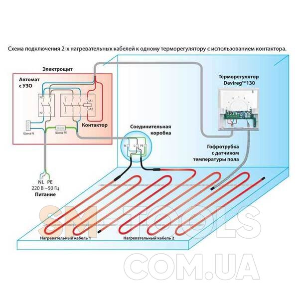 Четкое видимое соединение между нагревательным проводом и соединительным холодным концом позволяет избежать случайного монтажа греющего кабеля в стене.