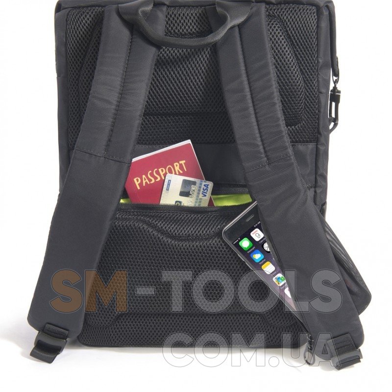 Основной матреиал рюкзака это крепкий водоотталкивающий нейлон с неопреновой окантовкой в нижней части рюкзака. Отделение для ноутбука оснащено фирменной системой Anti-Shock System (подушечки с силиконом) и позволяет размещать ноутбуки с диагональю 15" (MacBook Pro 15"/ Ultra books 15.6-16") а так же планшеты до 10".