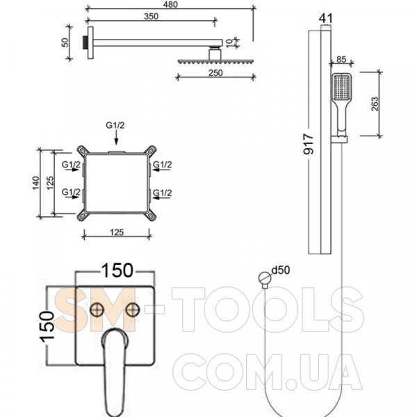 Форма лейки: Ручной душ: прямоугольная. Верхний душ: квадратная.
