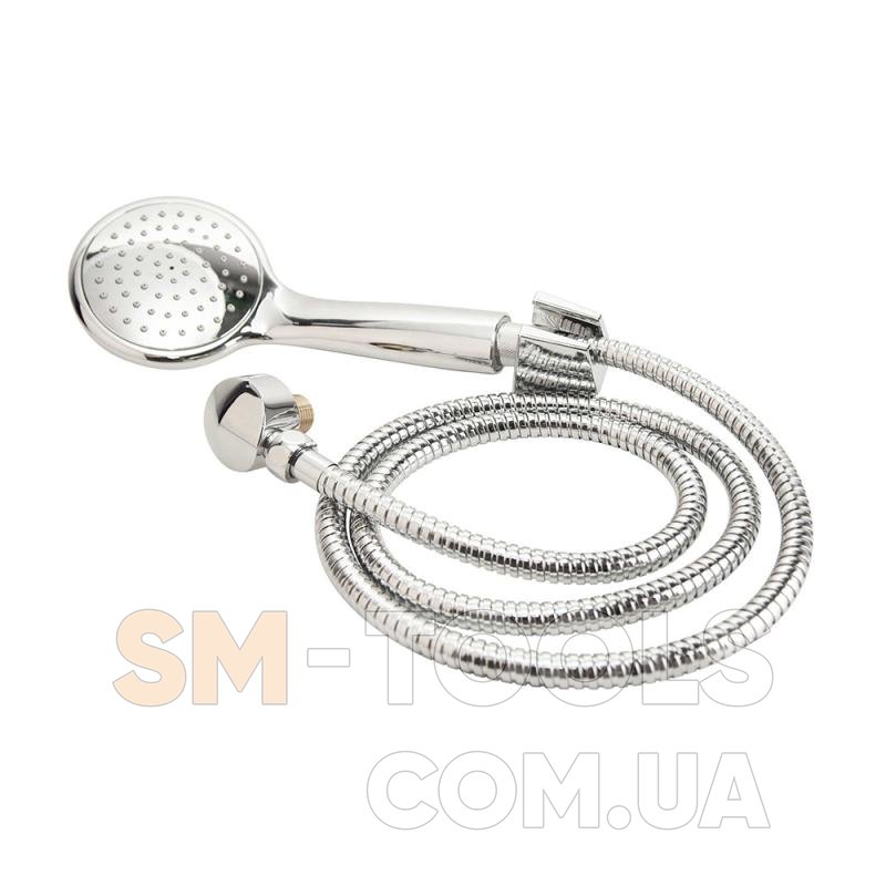 Смеситель, кронштейн для верхнего душа, лейка для верхнего душа, кронштейн для ручного душа, шланговое подсоединение, лейка для ручного душа, душевой шланг, крепежи.