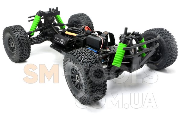 Модель полностью собрана, настроена и укомплектована радиоаппаратурой 2.4 ГГц. Дополнительно требуются только Li-Pol аккумуляторы (2 шт 2S или 2 шт по 3S) и зарядное устройство к ним.