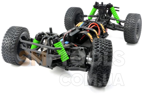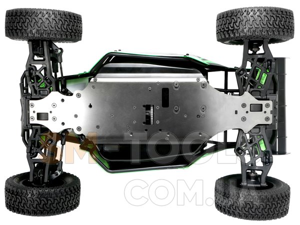 Шасси модели сделано из сверхпрочного и ультралёгкого 4-мм алюминия. Трансмиссия содержит три дифференциала с высокоточными шестернями изготовленными на профессиональном CNC-оборудовании для надёжного обеспечения передачи крутящего момента к каждому из четырёх колёс! Высокопроизводительные шины изготовлены специально для грунтовых трасс с отличным сцеплением и длительным сроком службы.