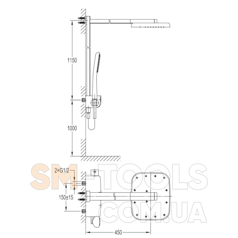 Количество функций верхнего душа: 2 (Тропический душ, Тропический душ Air-Mix)