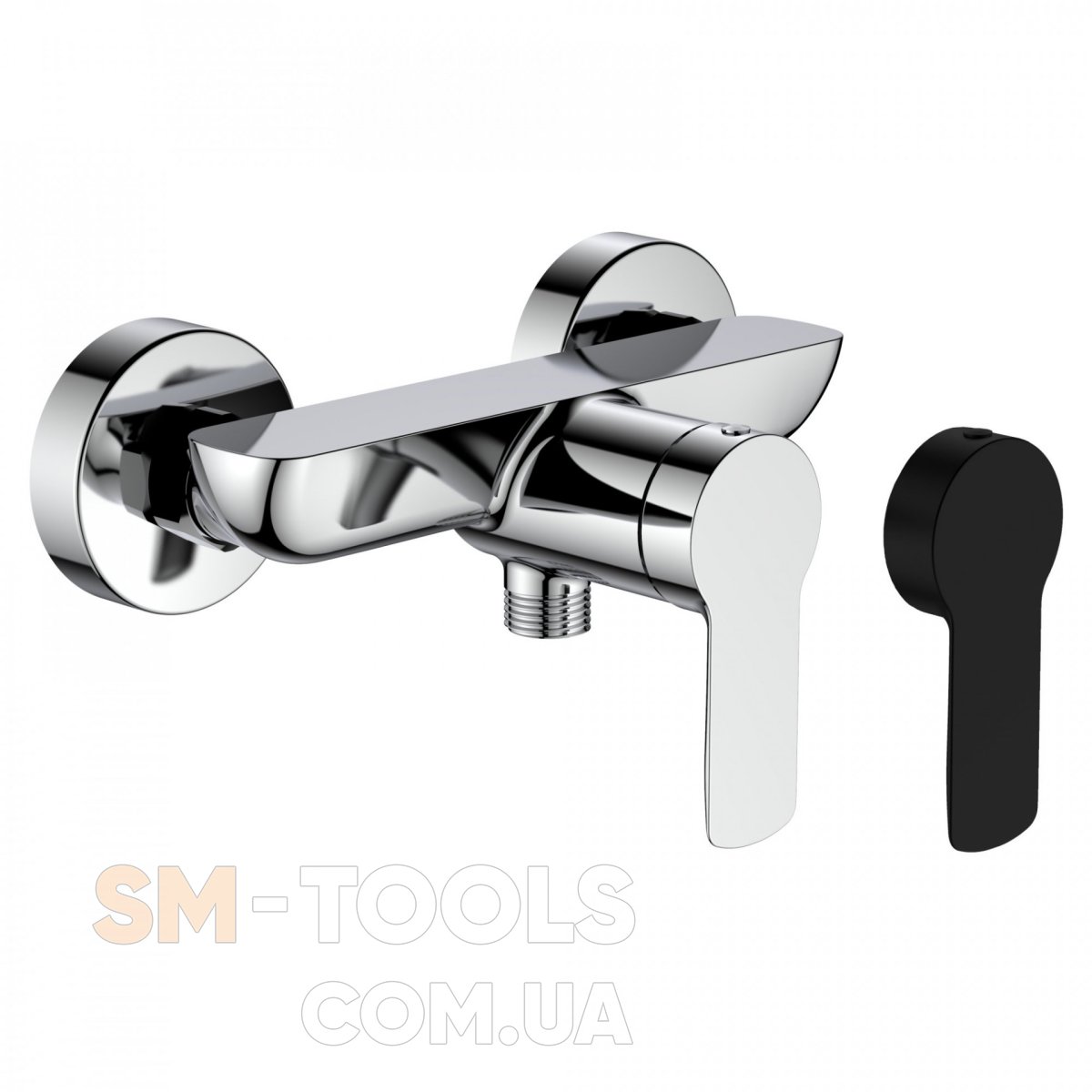 В комплекте со смесителем идут две ручки: хромированная и чёрная. Также можно докупить ручки красного цвета 15208800.