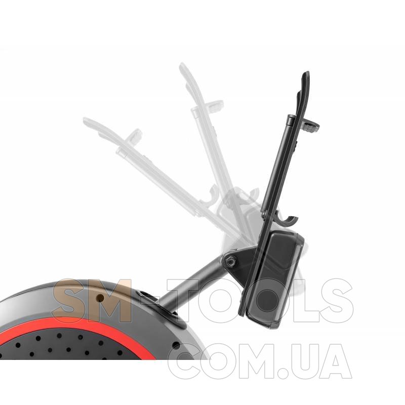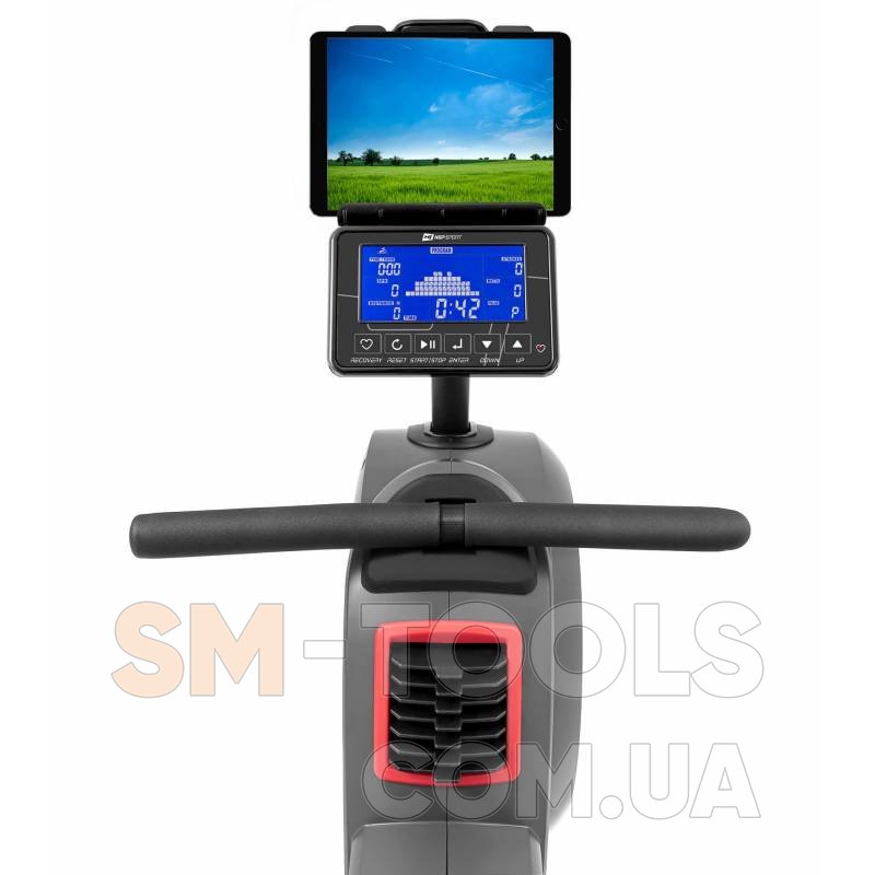 Компьютер с регулируемым углом наклона, предлагает широкий выбор тренировочных программ (включая готовые режимы тренировок, режим соревнований). Он также позволяет измерять пульс - используя беспроводной телеметрический ремень HS-P095PR, совместимый с гребным тренажером (ремень не входит в комплект, его можно приобрести отдельно). При выполнении упражнений с поясом вы можете тренироваться в соответствии с установленным сердечным ритмом (программа HRC) и использовать функцию восстановления, чтобы помочь вам проверить свою физическую форму. Встроенная подставка обеспечивает удобное использование мобильного устройства во время тренировок.