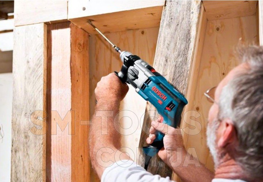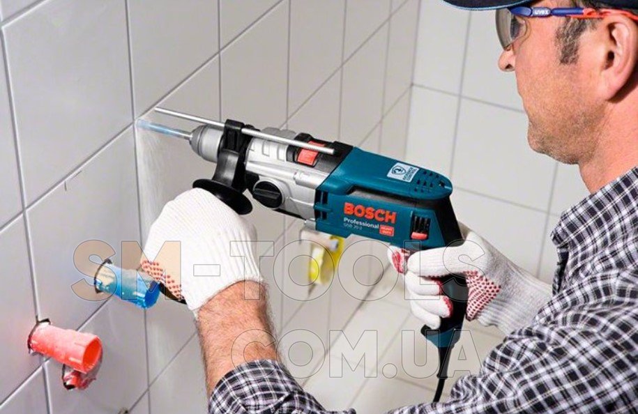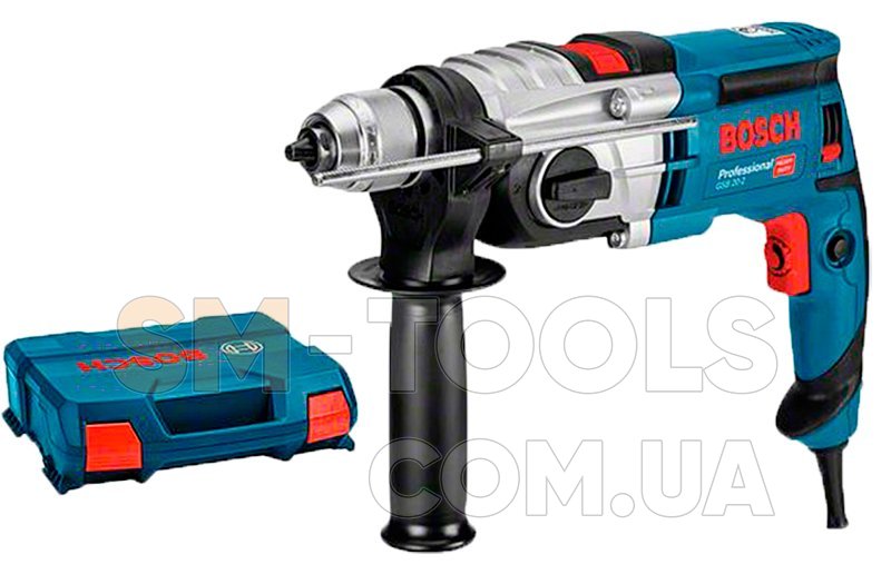 Ударная дрель Bosch GSB 20-2 мощностью 850 Вт. Двухскоростная (0-1000 / 3000 об/мин) с быстрозажимным патроном с диапазоном зажима1,5–13 мм. Ударный механизм совершает 0-17000 / 51000 уд/мин. Крутящий момент 36 / 15,5 Нм. Резьба сверлильного шпинделя 1/2"–20 UNF. Дрель изготавливает отверстия в бетоне диаметром 18 / 13 мм, в камне и кирпичной кладке — 20 / 15 мм, в древесине — 40 / 25 мм, металлах —13 / 8 мм. Доставляется в практичном L-Case с быстрозажимным патроном 13 мм, ограничителем глубины (210 мм), дополнительной рукояткой.