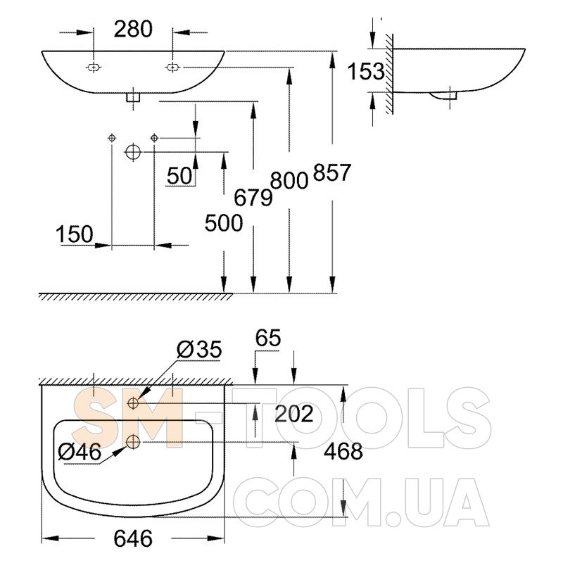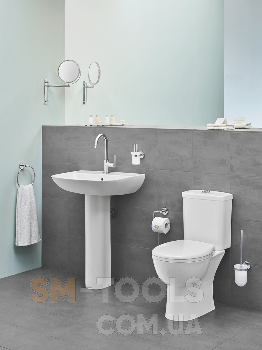 Раковина идеально подойдет к полупьедесталу GROHE Bau (39426000) и пьедесталу (39425000).