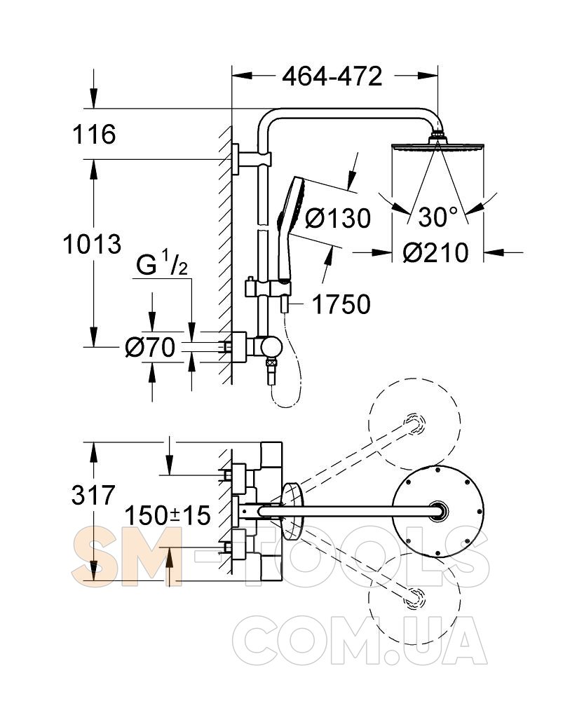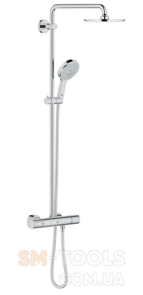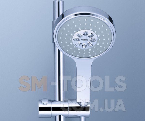 Данная душевая система, оснащенная поворотным верхним душем, создает поток воды, который по ощущениям напоминает ласковый летний дождь. В комплект также входит ручной душ с четырьмя разнообразными режимами струи, которые активируются одним нажатием на клавишу. Первый режим – мягкий и равномерный, второй – более обильный и бодрящий с забором воздуха через душевой диск и подмешиванием его к потоку воды, третий – интенсивный концентрический для утреннего пробуждения и освежающего массажного воздействия на кожу. При четвертом режиме восемь подвижных форсунок создают эффект пульсации струи, великолепно подходящий для проведения расслабляющего массажа головы и воротниковой зоны. У обеих душевых головок форсунки изготовлены из мягкого силикона, устойчивого к известковым отложениям и облегчающего поддержание в чистоте. В конструкции термостата применяется технология GROHE CoolTouch, предотвращающая нагрев внешней поверхности и, следовательно, ожоги. Установите в своей ванной комнате эту мощную душевую систему и наслаждайтесь расслабляющим душем приятной Вам температуры, расходуя практически вдвое меньше воды, чем обычно, за счет технологии GROHE EcoJoy.