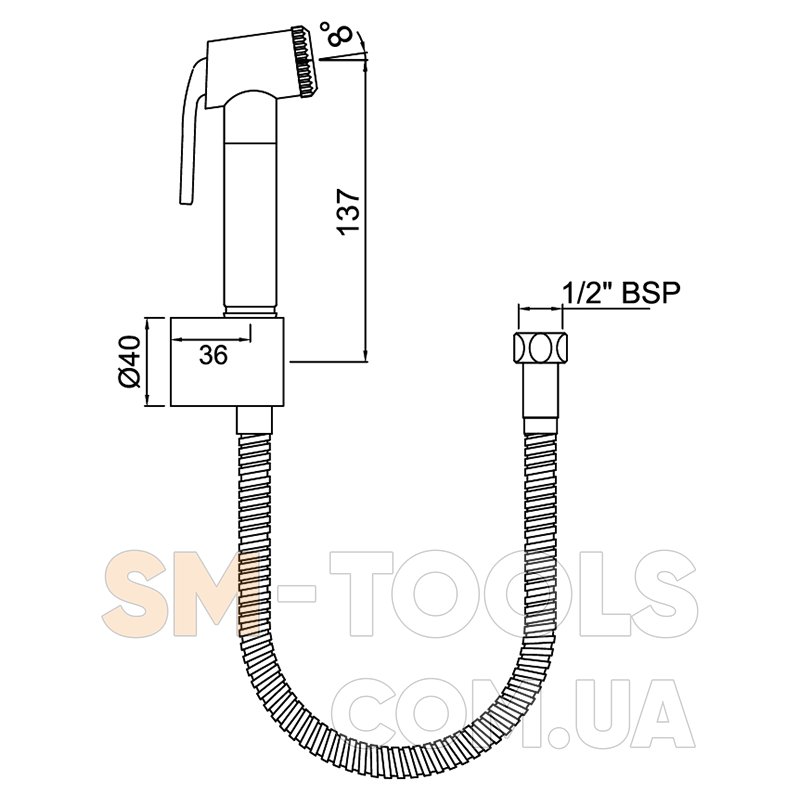 Гигиенический набор с бидеттой, кнопкой-затвором, настенный держателем и шлангом.