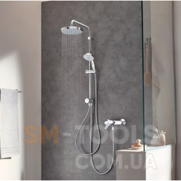 Коллекция Tempesta New отличается гармоничным сочетанием классических форм и стильного исполнения с использованием современных технологий. Традиционная форма душевой лейки дополнена системой идеального распределения потока воды, защитой SpeedClean против известковых отложений. Хромированная поверхность идеально сочетается с аксессуарами Grohe.