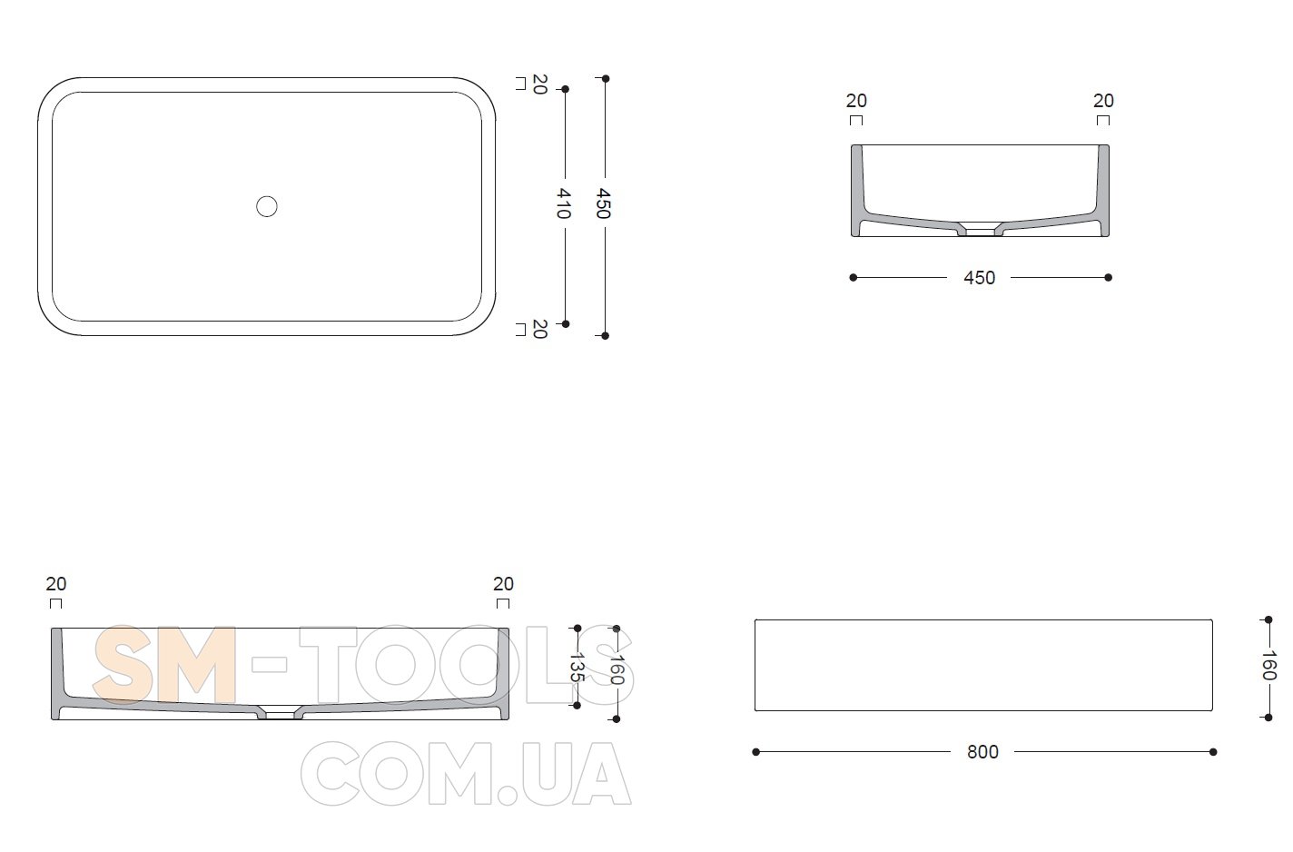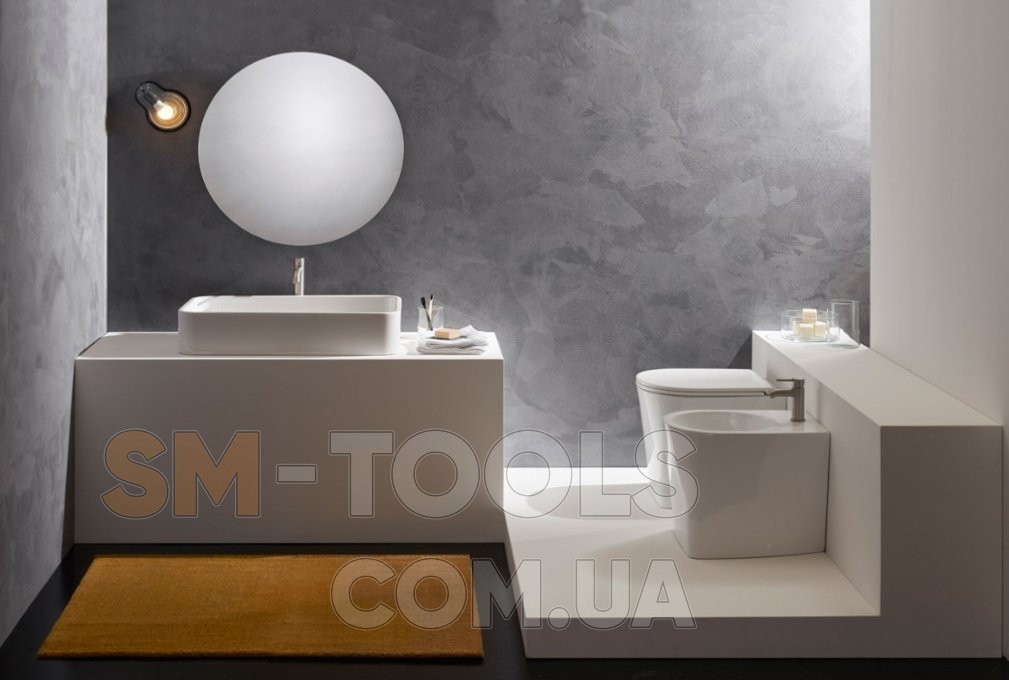 Умывальники выпускаются, производителем с возможностью выбора длины, а также у раковины нет площадки под смеситель, это придает внешнему виду раковины новизну и необычность, но к данному предмету сантехники, требуется установить смеситель, который выводится со стены или же высокий смеситель, который монтируется в столешницу.