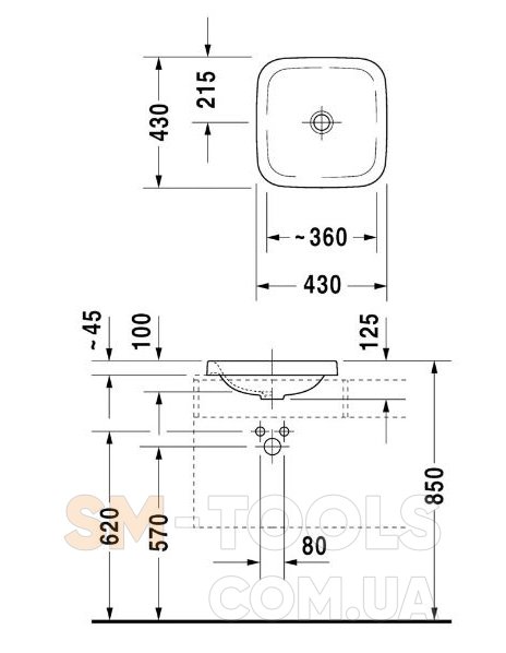 Умывальник встраиваемый для встраивания сверху