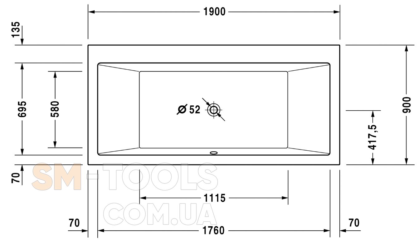 Характеристики Ванна Duravit Vero 190x90 700136000000000: