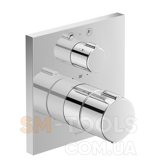 Итак, как ничего не стоит на месте данный производитель выпустил на рынок смеситель с термостатом для душа в строгой, квадратной форме с тонким и строгим рычагом управления. Стиль термостата востребован покупателями и продумывался таким образом, который бы подошел под большинство стилей ванных комнат.