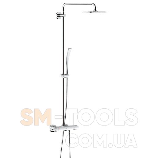 В комплектацию данной душевой системы также входит ручной душ с приятным дизайном, широким режимом струи и возможностью регулировки положения по высоте за счет скользящего держателя на штанге.