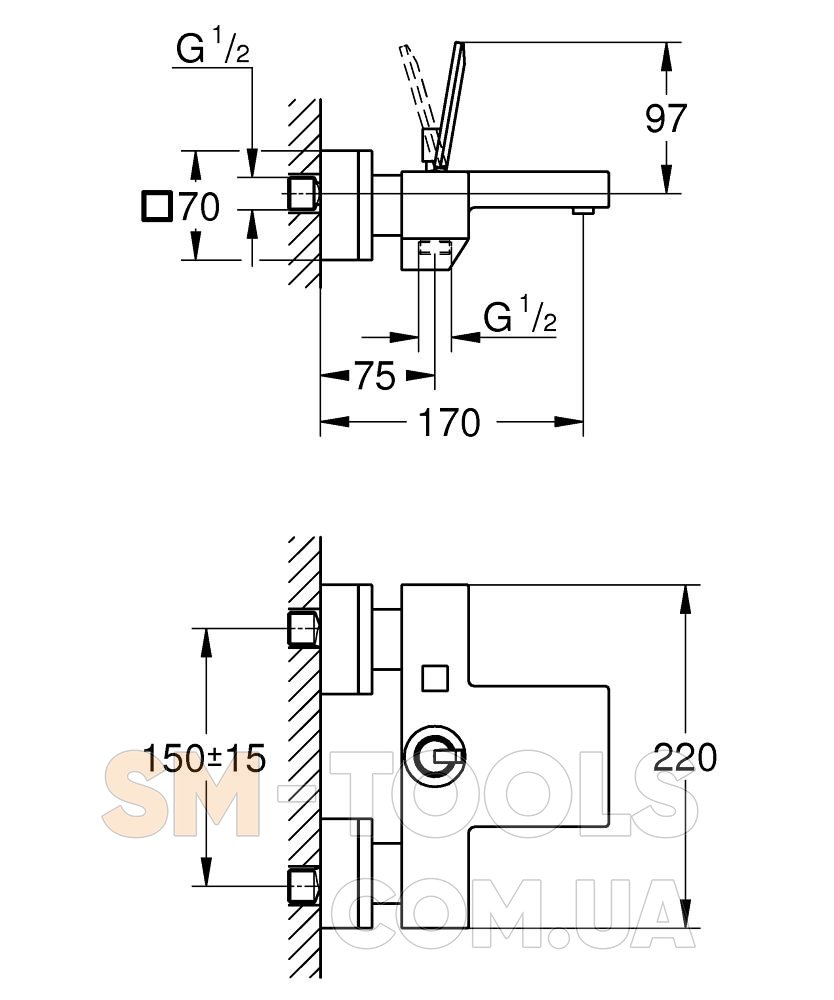 Тип монтажа смесителя: На стену