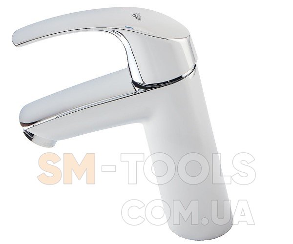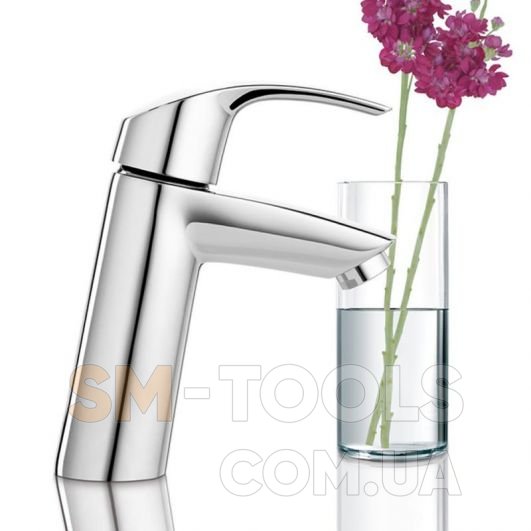 Смеситель для умывальника Grohe Eurosmart 23324001 оснащен одним элементом управления - металлической рукояткой.