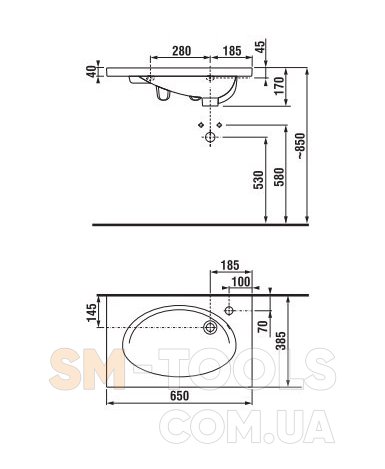 Отверстие под смеситель у данного умывальника находится с правой стороны.