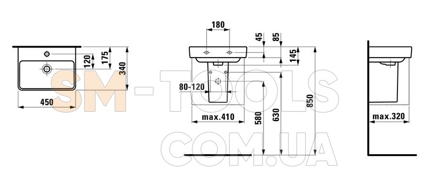 Характеристики Умывальник Laufen PRO S 45 H8159610001041: