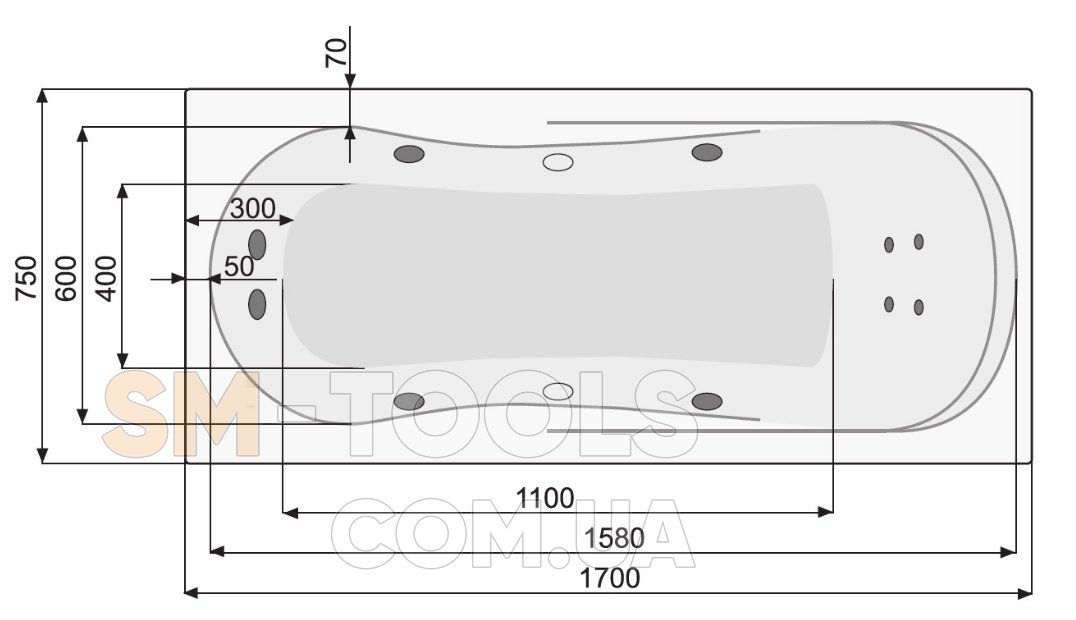 Описание Ванна PoolSpa Muza 170x75 PWPH310ZN000000 + ножки: