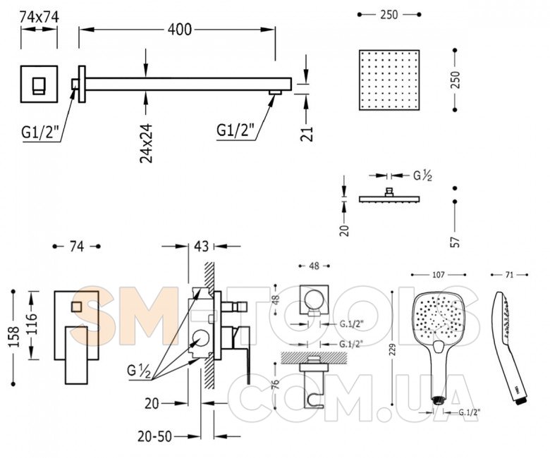 Настенный кронштейн для душа TRES CUADRO 13413940