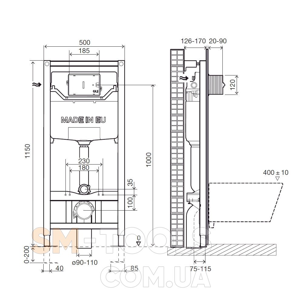 Технология Olipure - особенностью данной инсталляции является монтируемый внутрь бачка резервуар на 450 мл, соединённый со смывным клапаном. Резервуар заполняется ароматизированным средством, 2 грамма которого добавляются в воду при каждом сливе. Клавиша монтируется на специальном поворотном кронштейне, что облегчает доступ к клапану резервуара.