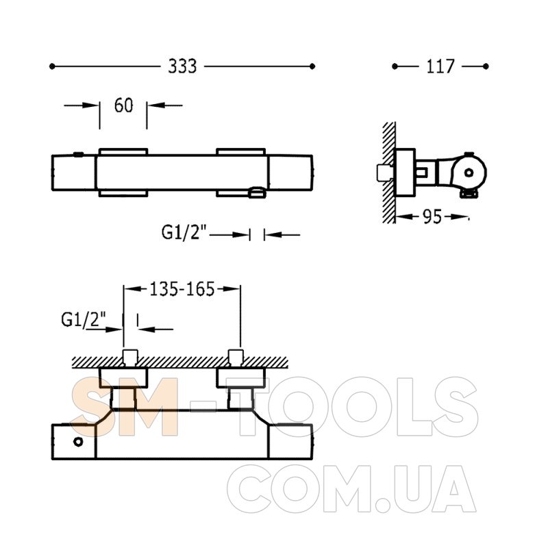 - настенный наружный монтаж на 2 отверстия
