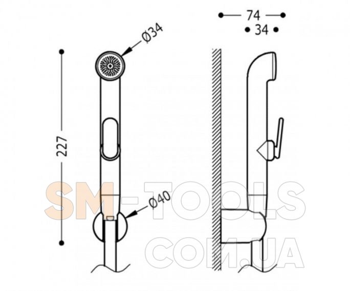 - Комплектация - Гигиенический душ, Душевой шланг, Настенный держатель для ручного душа