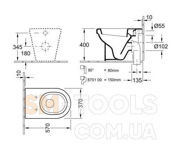 С горизонтальным выпуском воды входит в популярную коллекцию известного бренда Villeroy&Boch Omnia architectura.