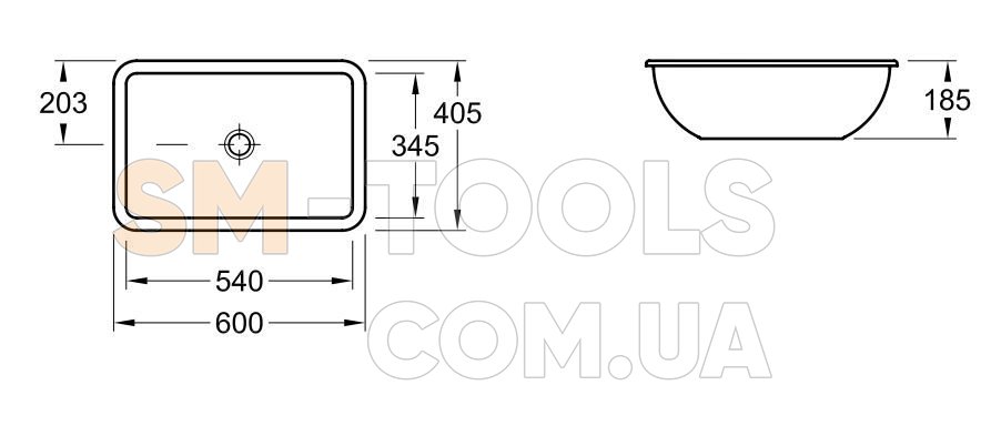 Врезная под столешницу раковина Villeroy&Boch Loop & Friends 61630001 имеет прямоугольную форму с размерами 540 x 345 мм.