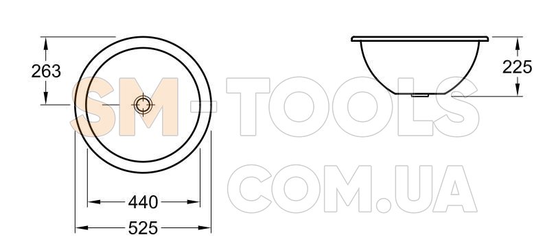 Врезная в столешницу раковина Villeroy&Boch Loop & Friends 61804301 имеет круглую форму с диаметром 440 мм.