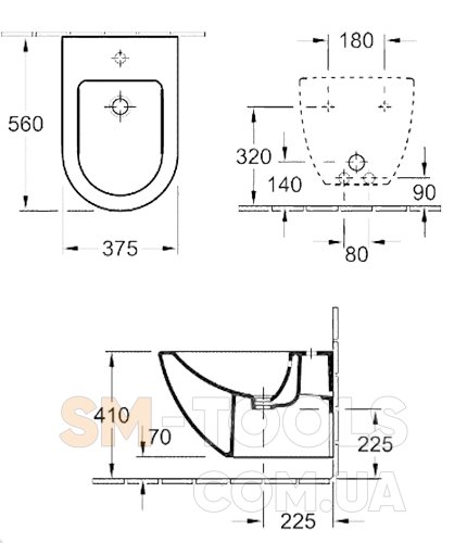Подвесное биде Villeroy&Boch Subway 74000001 для 1-позиционного смесителя.