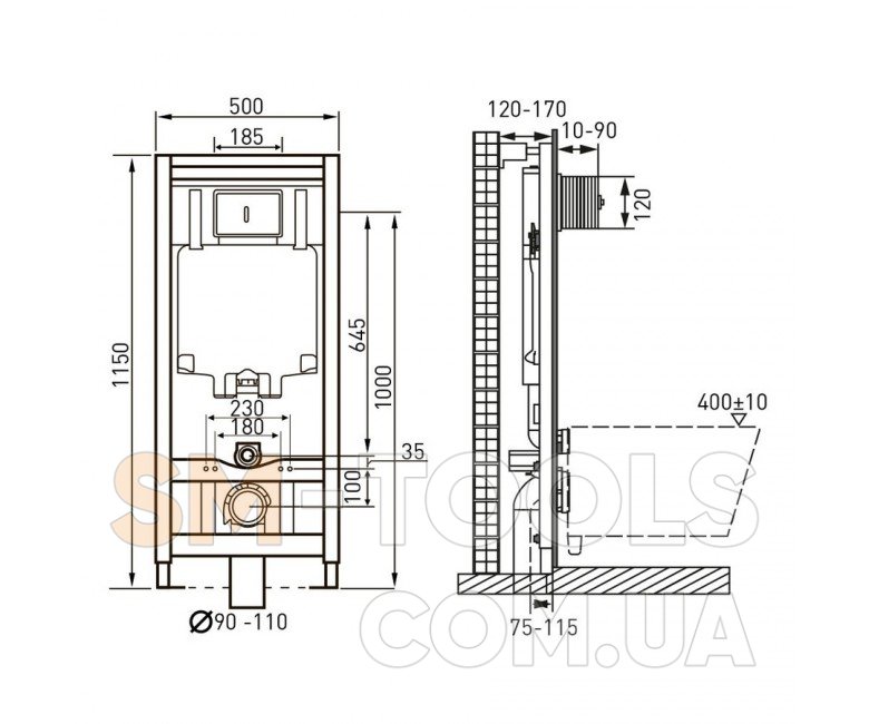 - глубокая сервисная шахта - 10-90 мм от поверхности стены