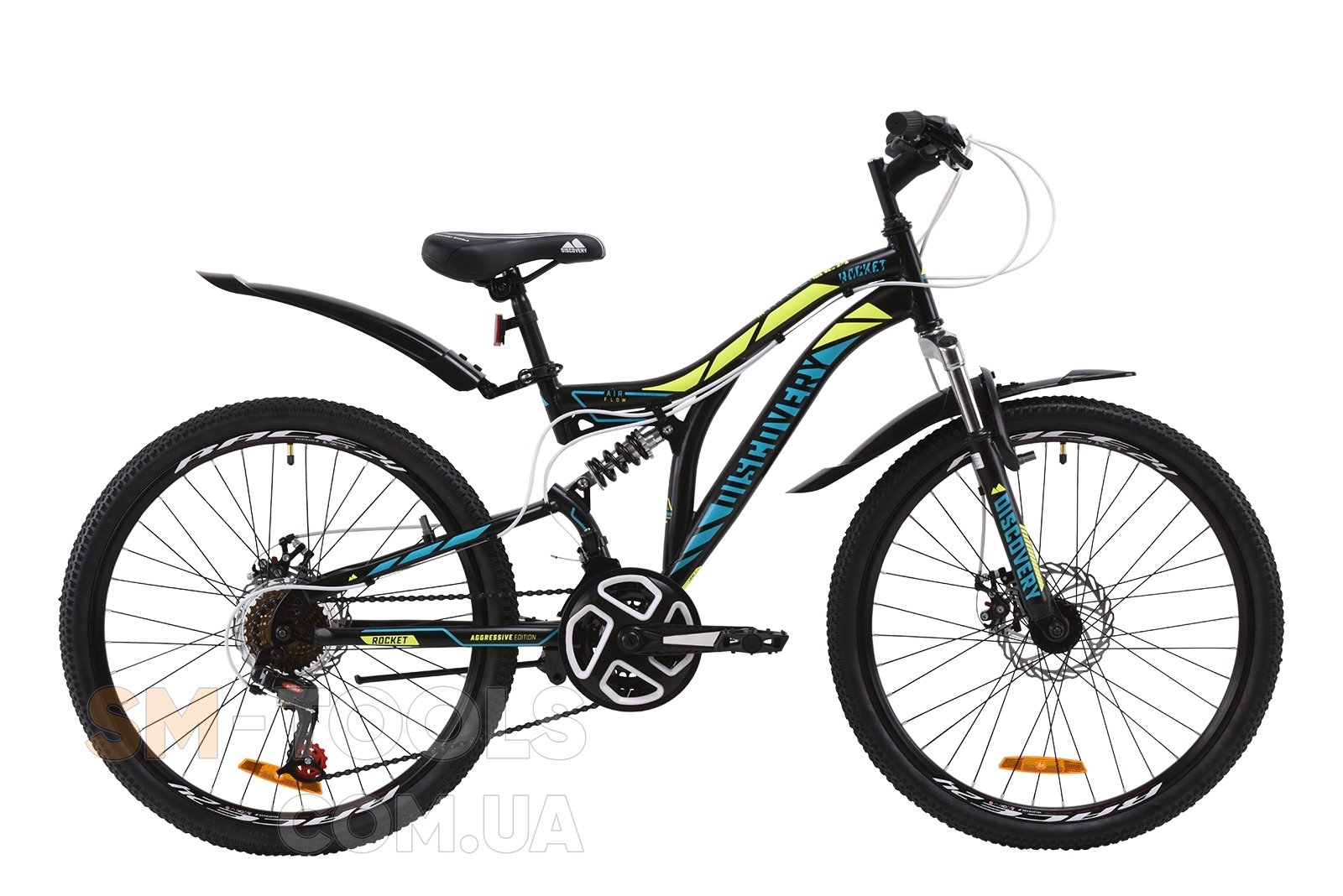 Велосипед Discovery Rocket AM2 DD 24" 2020 / рама 15" черный/желтый/бирюзовый OPS-DIS-24-185