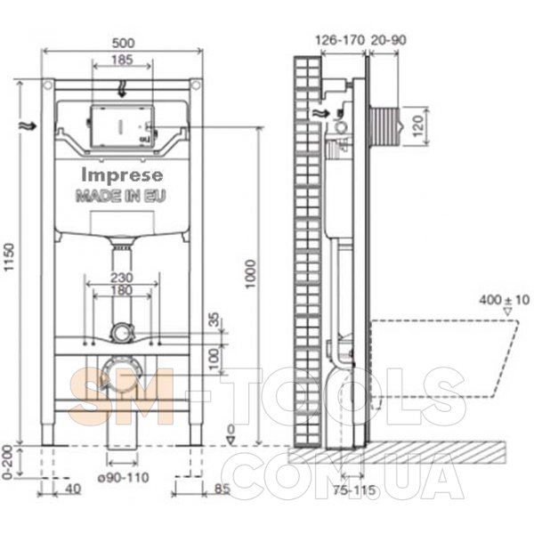 прозрачная защитная панель со встроенными крепежными винтами делает максимально удобным и легким доступ к съемным клапанам бачка и подводки воды. Ревизионное окно- 185х120мм