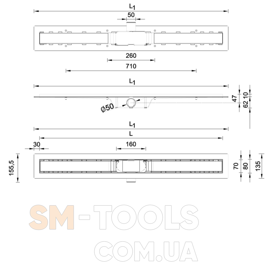 Душевой канал Styron Под плитку 900мм STY-F-90