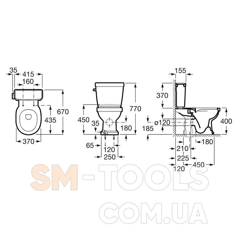 Габариты унитаза (ВхШхГ) : 370x670x400 мм