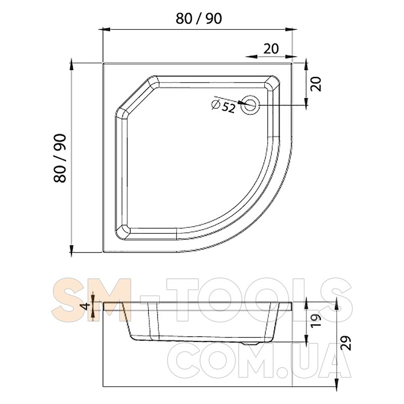 Размеры (ВхШхГ): 290 х 900 x 900 мм