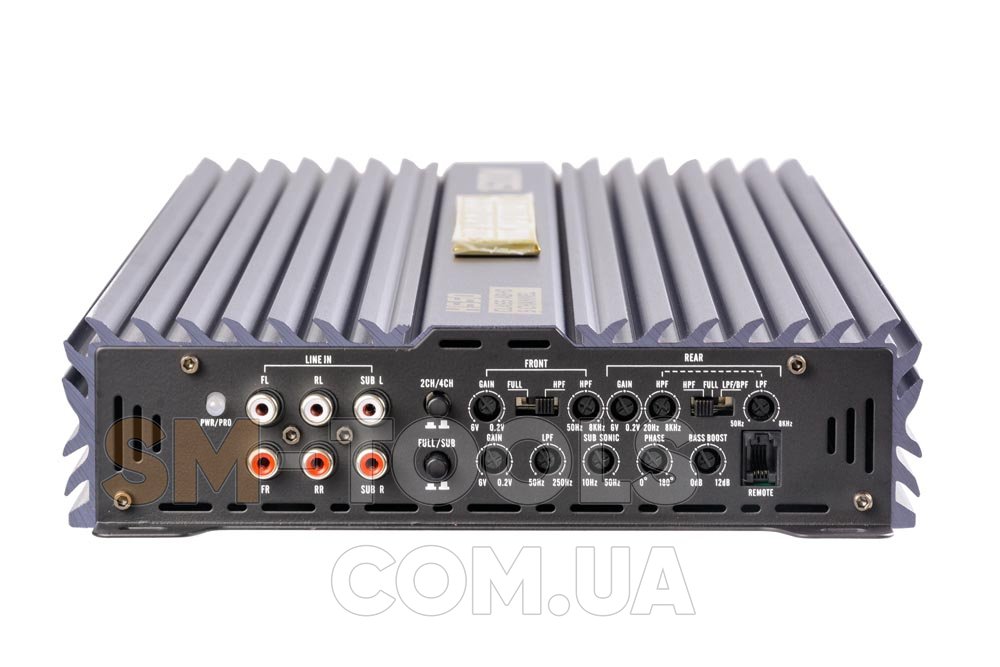 Ном.мощность 4х100Вт+1х350Вт (4 Ом)/4х150Вт+1х550Вт(2 Ом) / мостовое 2х300Вт + 1х350Вт(2 Ом)