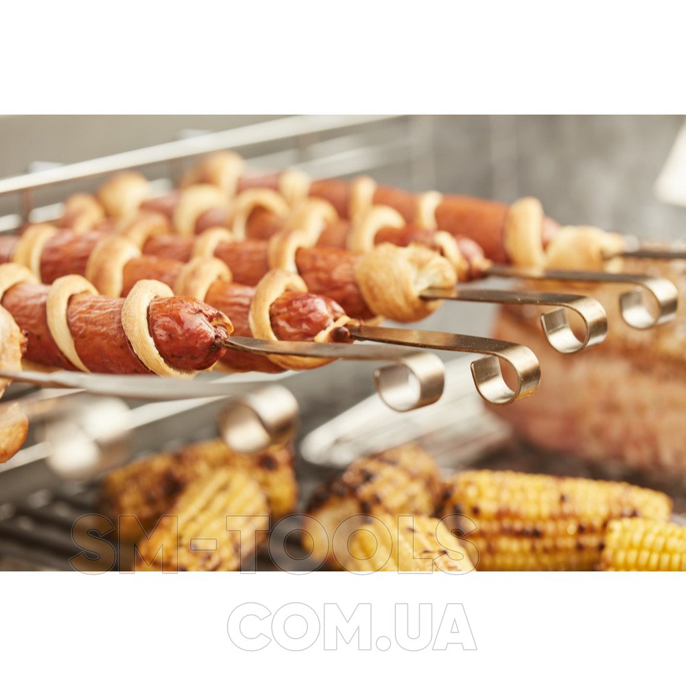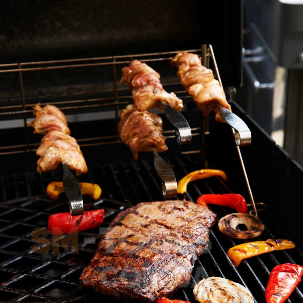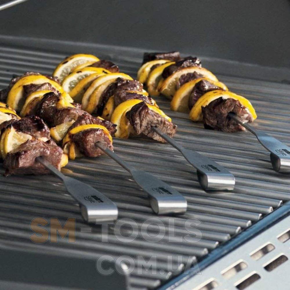 Набор шампуров-шпажек идеально подходят для приготовления на гриле продуктов небольшого размера: мясные и овощные шашлыки, морепродукты, грибы. Шампура можно приобрести в качестве дополнительного комплекта для многоуровневой подставки.