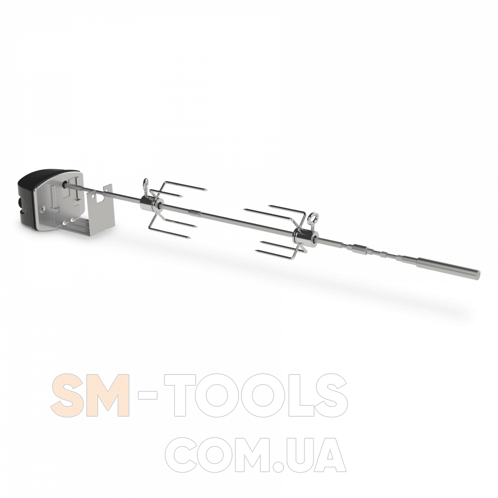Вертел оснащен двумя вилками, на которых может поместиться целая курица или мясной рулет