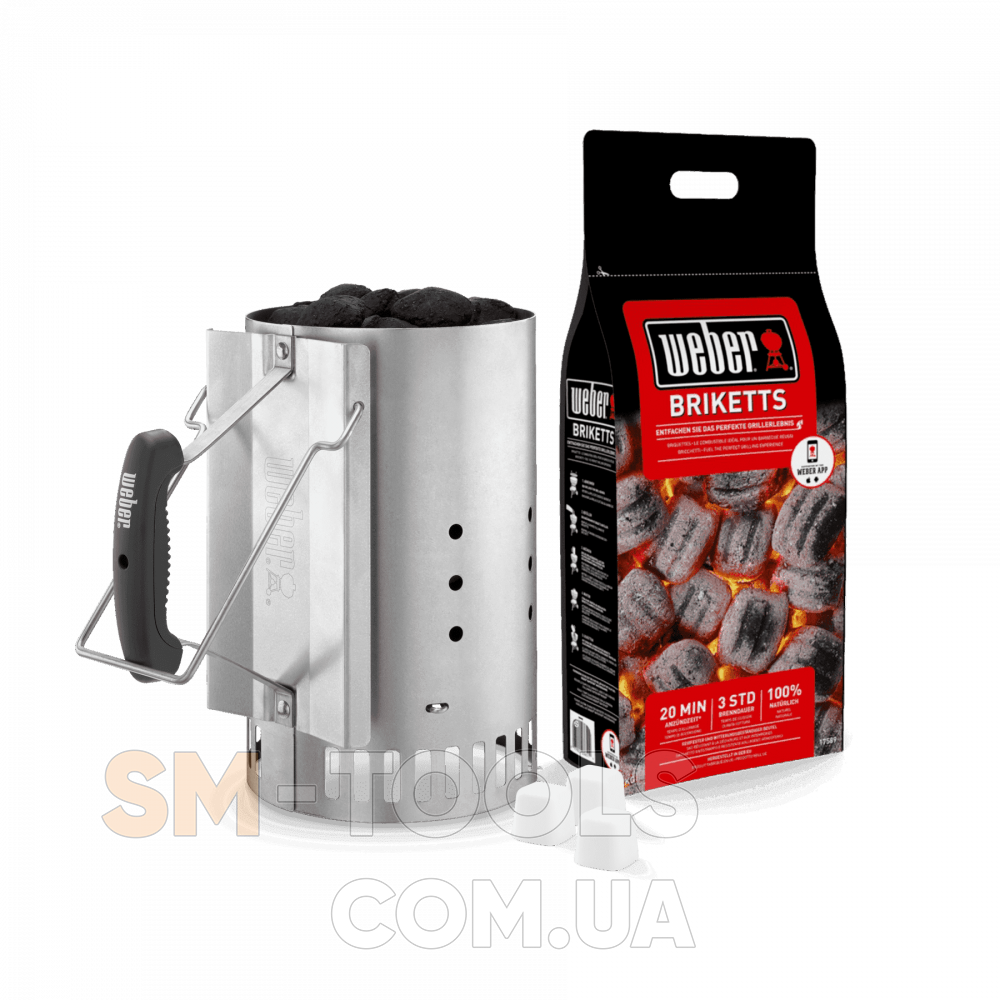 В наборе есть все, чтобы разжечь гриль: стартер, парафиновые кубики для розжига, угольные брикеты. Просто заполните трубу стартера углем, поместите под него кубики для розжига или смятые газеты, и подожгите их. Через 15 минут брикеты полностью разгорятся, и можно высыпать их в котел гриля. Парафиновые кубики можно использовать, даже если они промокли. А термостойкая ручка стартера и подвижная верхняя ручка удобны для высыпания угля.
