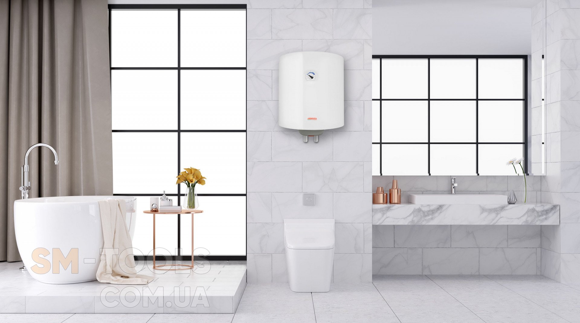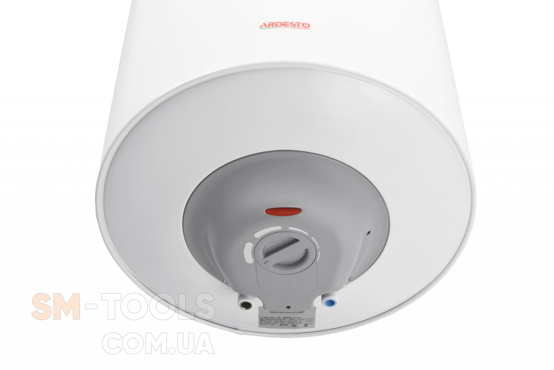 Бойлер Ardesto EWH-50ACWMI выполнен в круглом форм-факторе. Он монтируется в вертикальном положении. Механическая панель управления расположена снаружи, в нижней части, а индикатор нагрева — на лицевой панели водонагревателя.