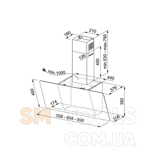 Инновационная наклонная вытяжка в элегантном исполнении корпуса, сочетающим нержавеющую сталь и закаленное стекло черного цвета придаст интерьеру особый шарм. Вытяжка оснащена сенсорной панелью управления, угольным фильтром, таймером, а также индикатором насыщения фильтров.