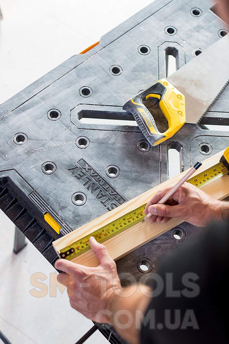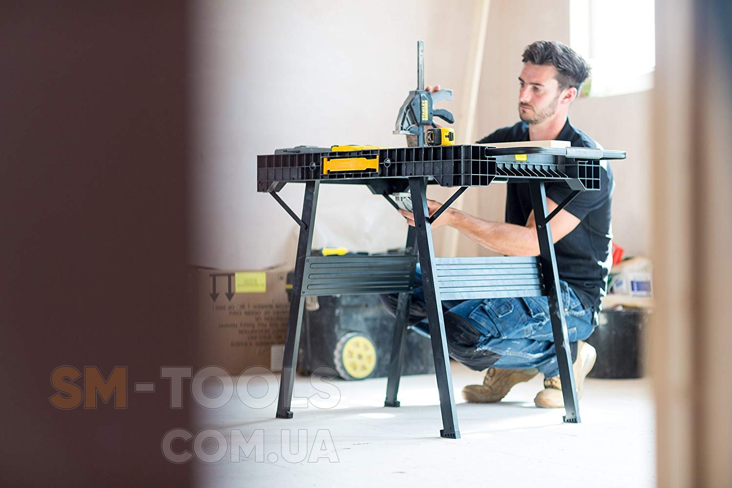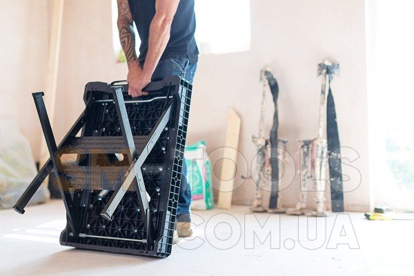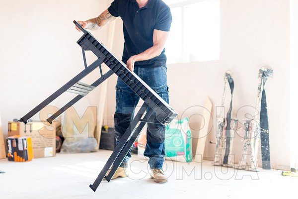 Складная конструкция – обеспечивает эргономичное и быстрое приведение верстака в рабочее состояние и складывание, Металлические ноги – прочная конструкция, максимальная нагрузка на верстак 450 кг.