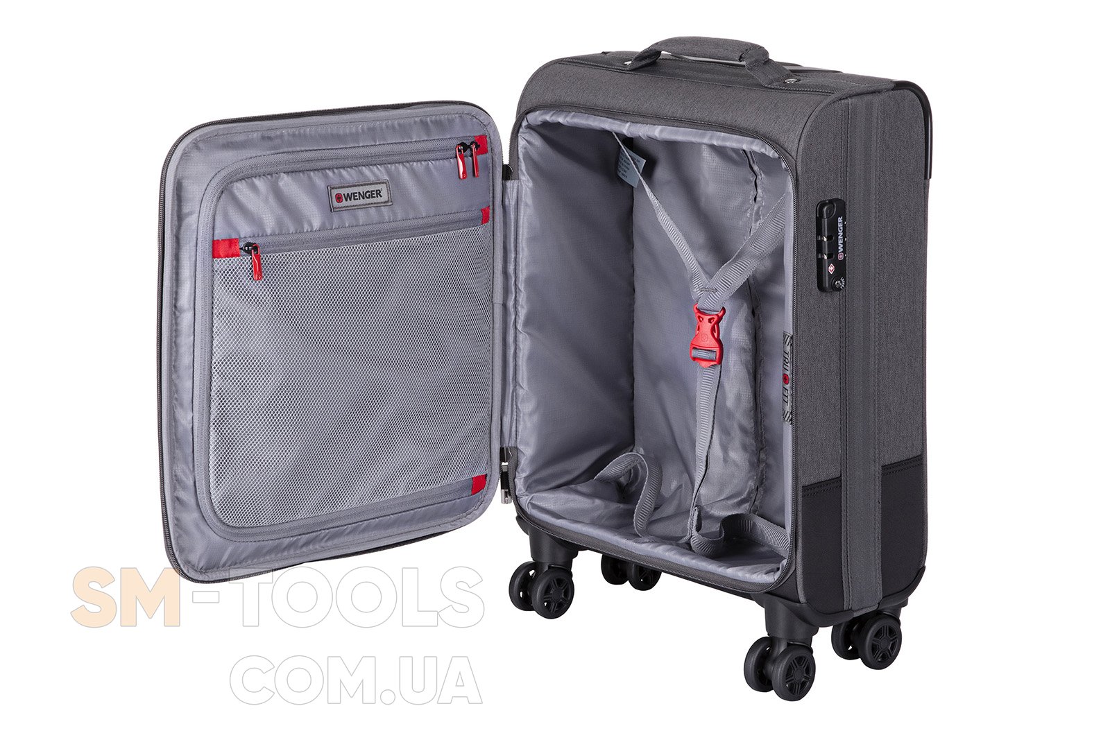Малый (S-size) текстильный 4-х колёсный чемодан Wenger серии Deputy. Размер позволяет использовать его при переездах в ручной клади*. Вместительный текстильный 4-х колесный чемодан Wenger Deputy - лучший помощник, который станет самым комфортным спутником в поездках и путешествиях. Изготовлен из качественного и прочного материала. Чемодан имеет встроенный TSA-замок, что позволяет оставлять важные документы и личные вещи без всяких опасений. Ручка алюминиевая телескопическая, фиксируется в 3-х положениях; есть дополнительная ручка сверху и сбоку. Перекрестные компрессионные ремни фиксируют поклажу.