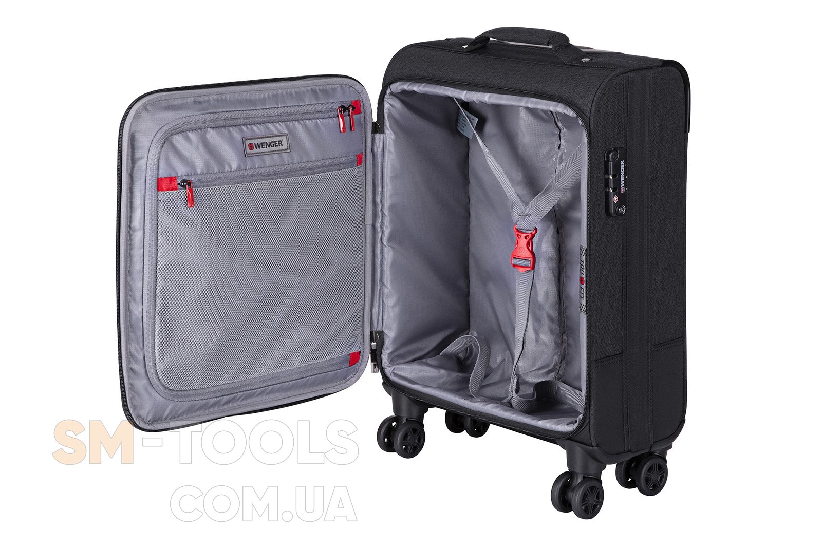Малый (S-size) текстильный 4-х колёсный чемодан Wenger серии Deputy. Размер позволяет использовать его при переездах в ручной клади*. Вместительный текстильный 4-х колесный чемодан Wenger Deputy - лучший помощник, который станет самым комфортным спутником в поездках и путешествиях. Изготовлен из качественного и прочного материала. Чемодан имеет встроенный TSA-замок, что позволяет оставлять важные документы и личные вещи без всяких опасений. Ручка алюминиевая телескопическая, фиксируется в 3-х положениях; есть дополнительная ручка сверху и сбоку. Перекрестные компрессионные ремни фиксируют поклажу.