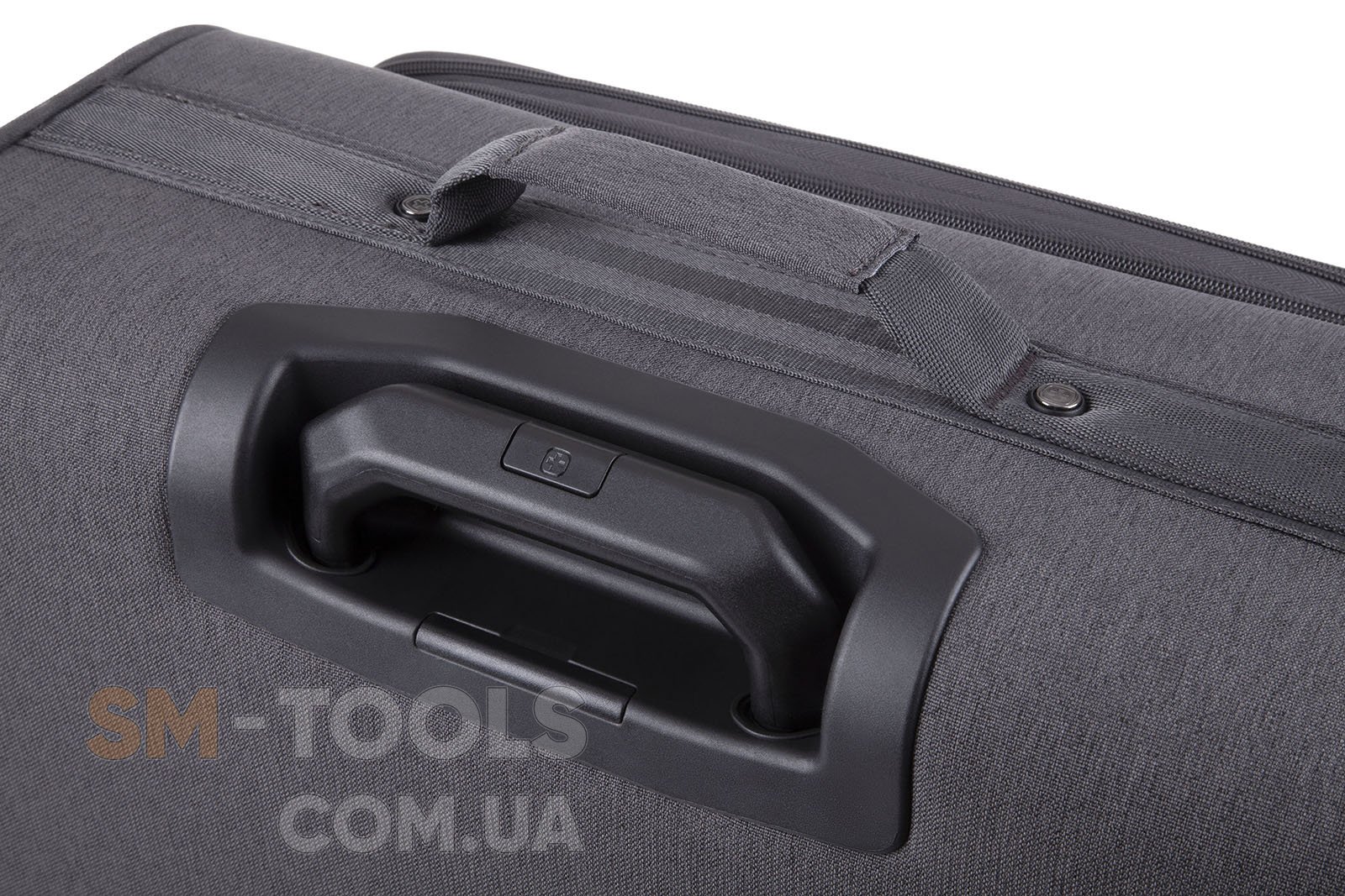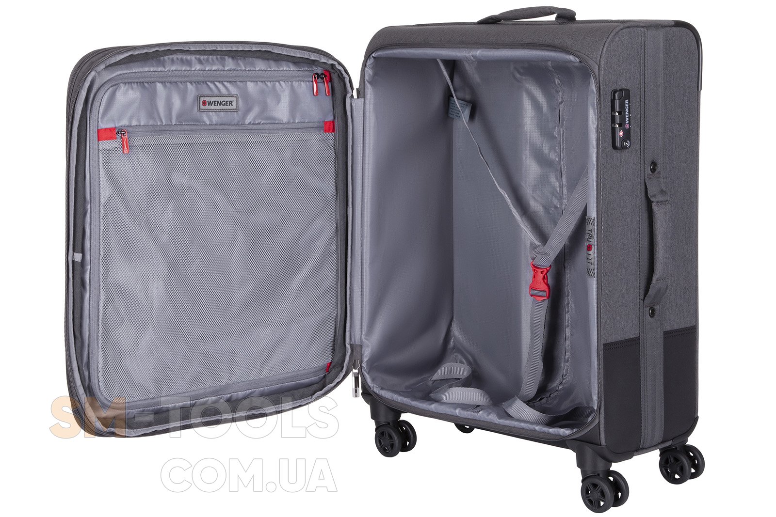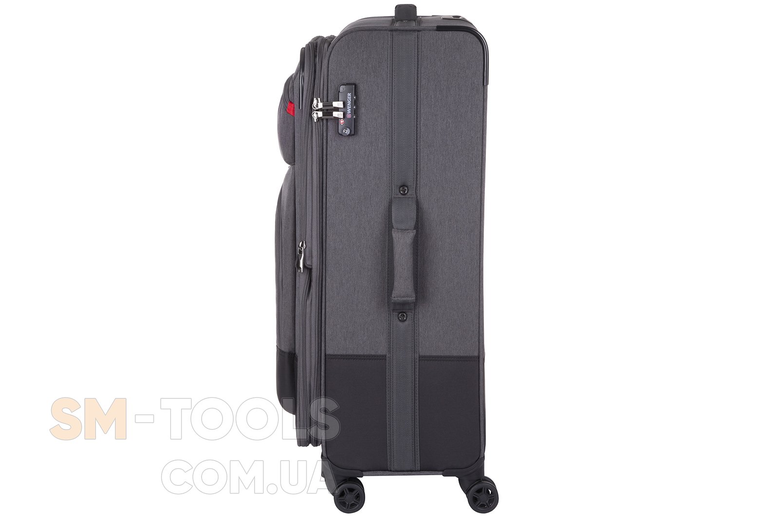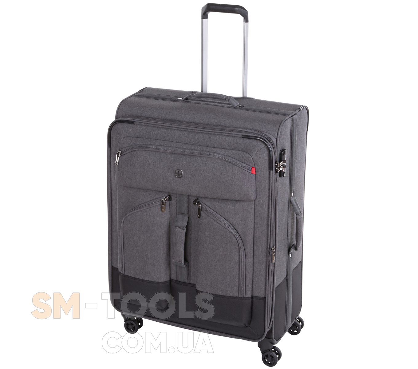 Большой (L-size) текстильный 4-х колесный чемодан Wenger серии Deputy. Вместительный текстильный 4-х колесный чемодан Wenger Deputy - лучший помощник, который станет комфортным спутником в поездках и путешествиях. Изготовлен из качественного и прочного материала. Чемодан имеет встроенный TSA-замок, позволяющий оставлять важные документы и личные вещи без всяких опасений. Есть возможность увеличения объема. Ручка алюминиевая телескопическая, фиксируется в 3-х положениях; есть дополнительная ручка сверху и сбоку. Перекрестные компрессионные ремни фиксируют поклажу.